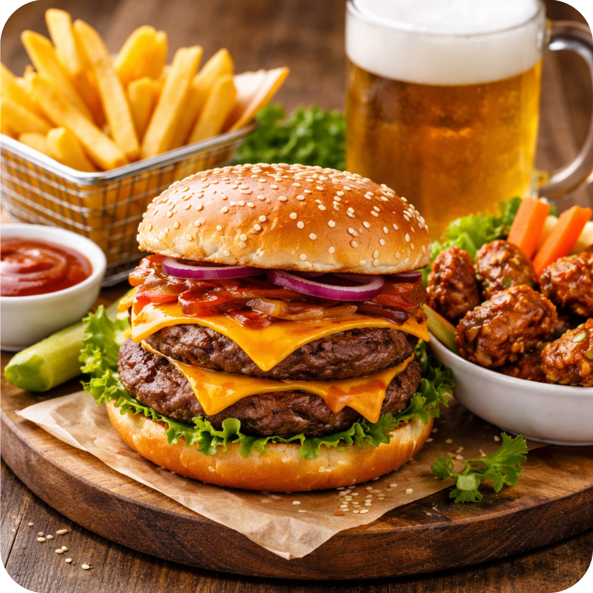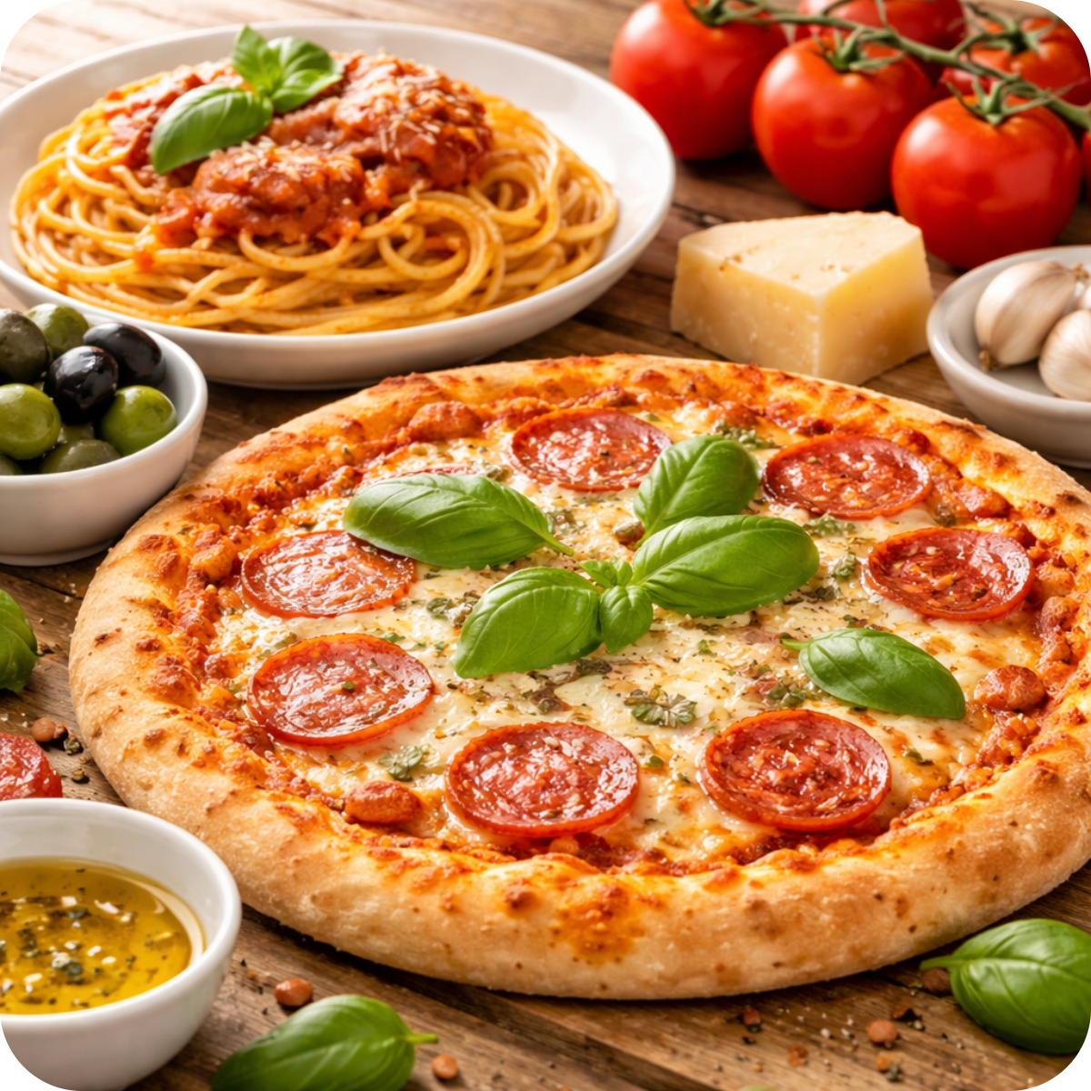 Pizza, fritti, insalate, hamburger