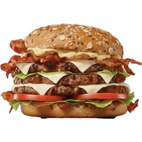 450gr di ciccia, formaggio filante, salsa Fame Chimica, bacon, cipolle alla birra, pomodori, insalata
